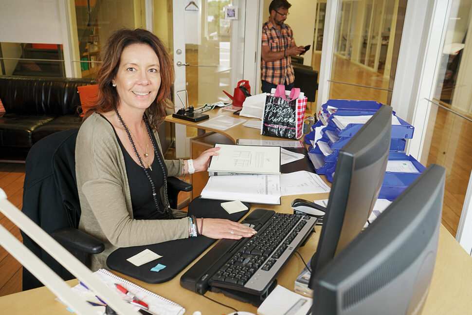 – Jag vill påstå att vi har en ganska slimmad ”överrock” i vårt företag. Vi är åtta personer på kontoret och då räknar jag också in den projektör vi anställde för några år sedan.