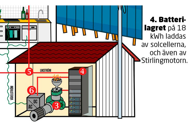 Solceller, hembatteri och en pelletsdriven Stirlingmotor. ”Hus utan sladd” är villan som fixar all sin elen själv.
