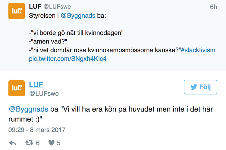 Även Twitter-flödet fylls med inlägg om Byggnads, se bilder här ovan.