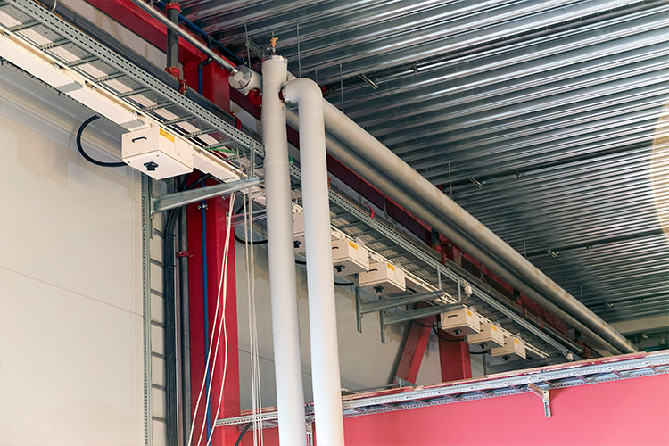 I lagerlokalen med 14 meters takhöjd har elkonstruktören fått tänka till vad gäller kabeldragning. Så mycket ström som möjligt överförs via Canalis strömskenor.