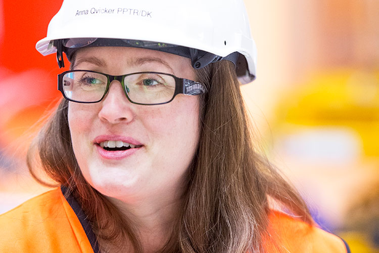 Ute i en av fabrikshallarna möter vi Anna Qvicker. Hon är civilingenjör i maskinteknik. Anna är konstruktionsledare i fabriken och har som uppgift att se till att den mekaniska teknik som används när en transformator byggs svarar mot kundens funktionskrav.