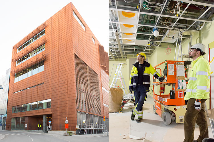 När Elinstallatören besöker byggarbetsplatsen har företaget ”bara” cirka 200 montörer kvar i projektet. Stora delar av sjukhuset är redan överlämnade och i drift. Däribland två sjukhusbyggnader, ett parkeringshus och den stora teknikbyggnaden som bland annat huserar reservkraften. Resten av NKS är fortfarande en byggarbetsplats. Det som kvarstår är en forskningsbyggnad, en behandlingsbyggnad och ytterligare tre huskroppar av sjukhusbyggnader.