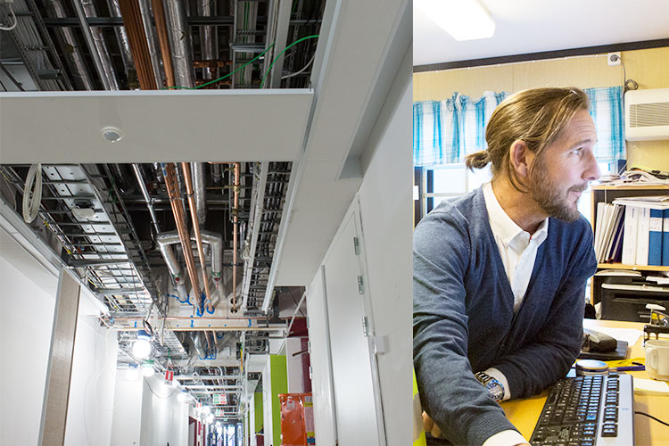 – Den ska ju fortfarande hänga i taket, och vips så finns det inget utrymme kvar för eldragning och ventilation, säger Sven Elliot, som är eldriftsansvarig.