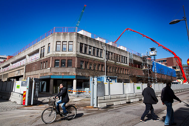 – Och eftersom den ursprungliga byggnaden skulle byggas på med en stor filmstad ovanpå det tidigare parkeringsdäcket visade beräkningar att det krävdes bättre grundläggning för att klara bärigheten. Nu har det injekterats ett stort antal pelare hundra meter ner till berggrunden för den sakens skull, säger Martin.