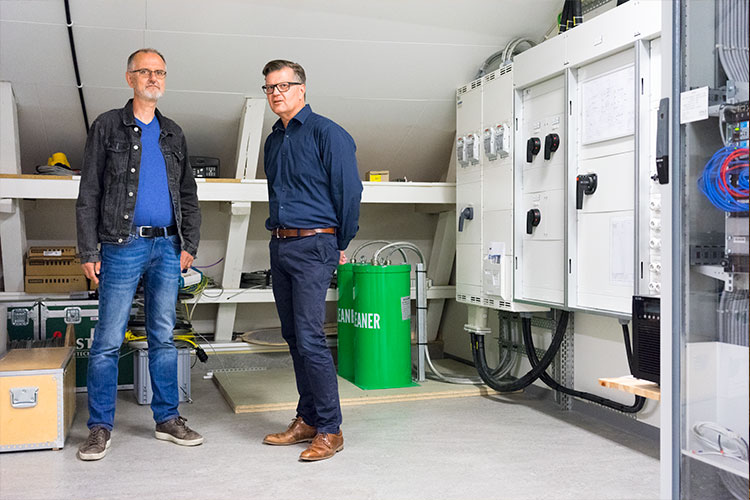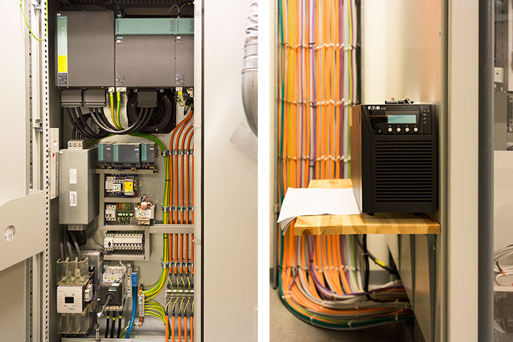 Vi tittar in i operahusets automationsrum där två gröna metallburkar står i ett hörn. Det är transformatorerna. Här börjar och slutar elsystemet som matar de 31 frekvensomriktarna, som också huserar i rummet. Det är nu en avgränsad elanläggning med en egen nollpunkt, dit även potentialsystemet har anslutits. Inga störningar kan numera söka sig ut till resten av elanläggningen. Både lägre och högre frekvenser stoppas, se biartikel.