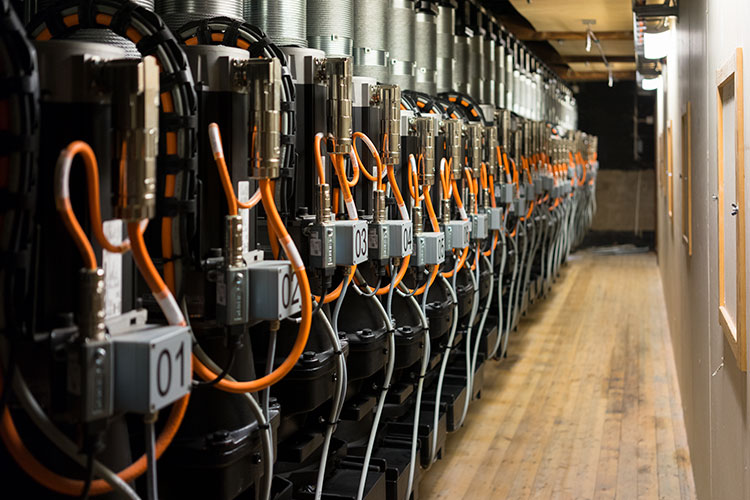 Förr skötte ett antal scenarbetare ett manuellt system med 20 rår som hissades med hjälp av motvikter på sammanlagt 4 ton. Som mest behövdes sju scenarbetare för att hantera kulisserna på en föreställning.