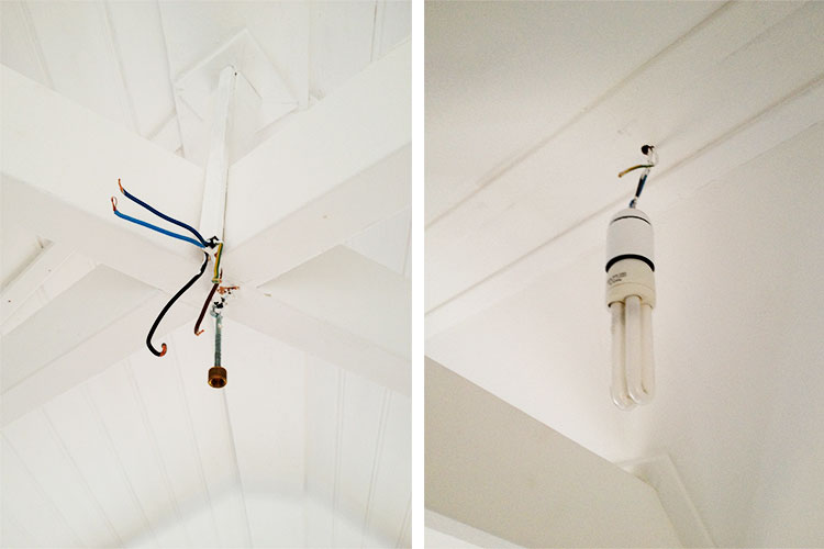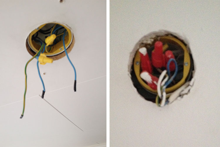 - Lamputtag saknas i tak för alla ljuspunkter. Nakna trådar och på flera ställen finns