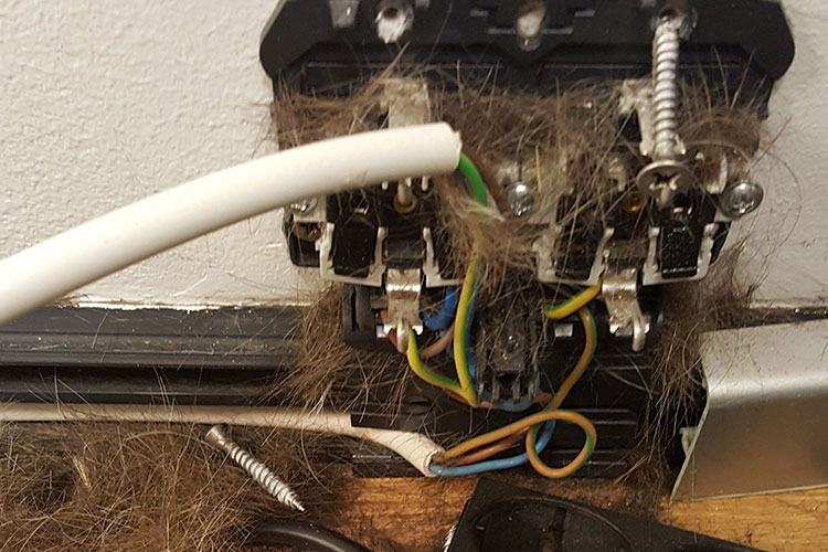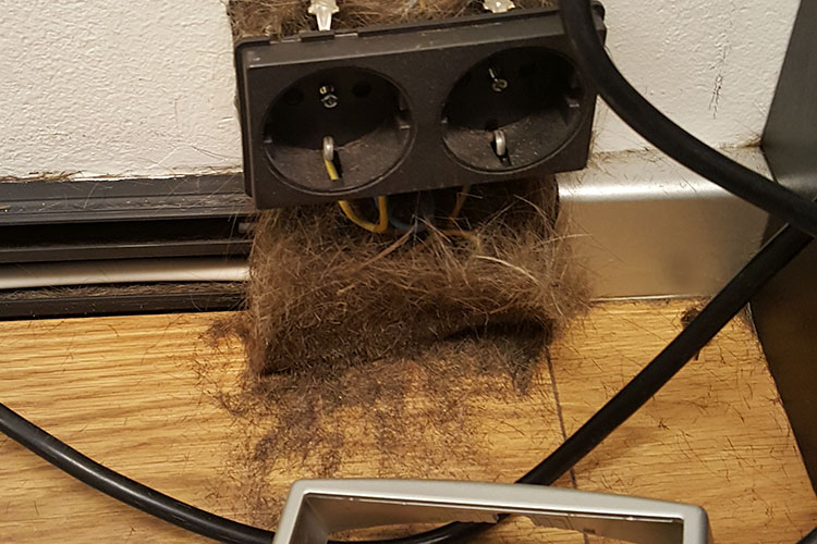 ”Skulle renovera en frisörsalong i Uppsala och mötes av detta. Alla uttag var lika fulla av hår.
