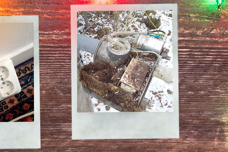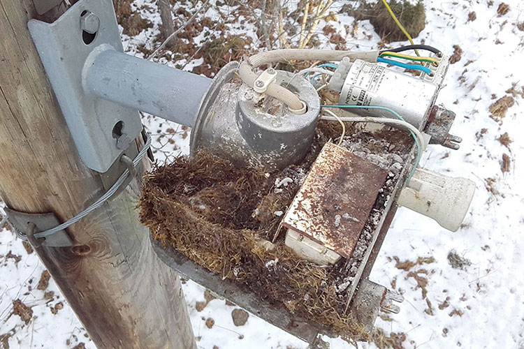 Troligtvis kortis i drosseln, så jag fick åka dit med skyliften och reparera felet. Blev lite paff när man hittar ett fågelbo inne i armaturen.”