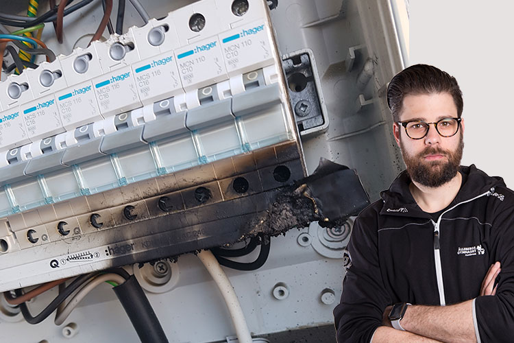 Vi ställer frågan till Elinstallatörens expertkommentator Henric Hagberg. Han börjar med att konstatera att själva felet är ganska uppenbart den här gången: någonting har brunnit i elcentralen. Vad det är som har brunnit? Jo, den del av elcentralen som vi kallar ”fasskenan”.