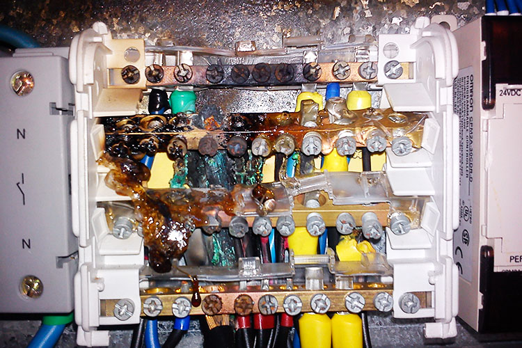 ”Denna fördelningsplint satt i en krymptunnel där man plastar in läskflaskor. Man bad mig komma ner och titta på maskinen som börjat uppföra sig konstigt.