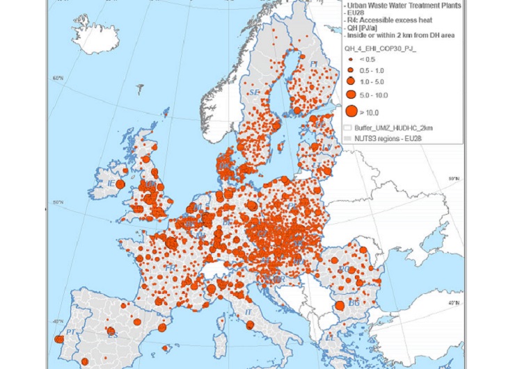 En kartläggning av EU:s tillgång på spillvärme från lågtemperaturkällor visar att potentialen är stor. Ungefär 340 terawattimmar värme per år är möjlig att ta tillvara från vattenreningsverk, tunnelbanor, datacenter samt offentliga och kommersiella fastigheter. Det motsvarar drygt 10 procent av EU:s totala energibehov för värme och varmvatten, som är cirka 2 980 TWh.