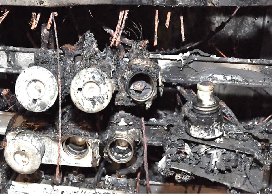 – Det här var ett riktigt enkelt case. Det syntes att branden startat i ett fördelningsskåp där översäkringen av huvudledningen manipulerats. Passdelen som begränsar möjlig säkring till 35 A hade slagits sönder och avlägsnats så att 63 A säkringar kunde sättas in i stället, trots att ledningarna i lokalerna var dimensionerade för max 35 A, förklarar Michael Steen.