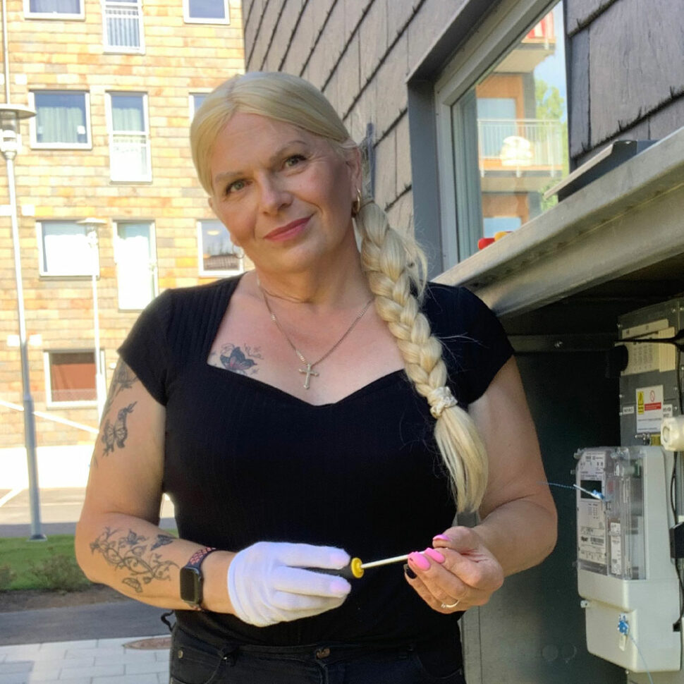 – Det är väldigt viktigt att vara tydlig med kunden kring hur mycket jobb det är att flytta en central, och hur lång tid det tar. Det går inte att stressa, eftersom det ökar risken för slarv, säger elektrikern Andrea Van Sand.