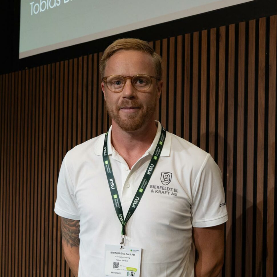 Tobias Bierfeldt, elinstallatör på Bierfeldt el och kraft, har gjort hundratals jordtag inom främst högspänning. På sitt senaste jobb var det taskiga markförhållanden, vilket ofta är den största svårigheten i installationen.