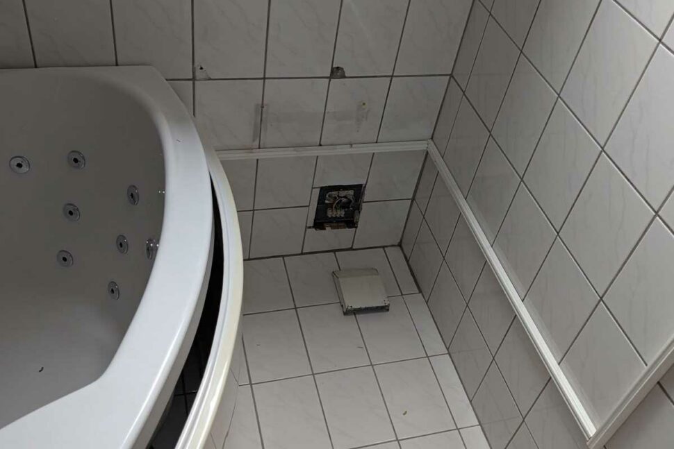 I badrummet hade det suttit en radiator bredvid bubbelbadkaret som inte var godkänd för badrum. Men trådarna till radiatorn var fortfarande spänningssatta med 400 V.