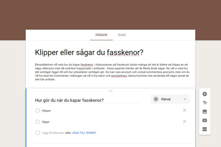 Elinstallatören vill veta hur du som yrkesperson gör för att kapa fasskenor. Många säger att det är bättre ur elsäkerhetssynpunkt att klippa av dem än att såga. Vissa experter hävdar att de flesta ändå sågar. Nu vill vi veta hur det ligger till och hur yrkeskåren arbetar i praktiken.