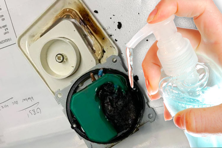 Driftelektrikern Jonas Nilsson fick rycka ut i full skyddsmundering när en dimmer brann på covidavdelningen. Nu manar han till försiktighet vid rengöring av strömförande don.