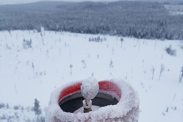 Hinderljusbyte är en grannlaga uppgift beskrev Lennart Nilsson, när vi först publicerade hans bild. ”I 29 fall av 30 handlar det om att byta lampa, därför har man inte med sig reservdelar upp.” Men i det här fallet var det armaturen som tagit stryk.