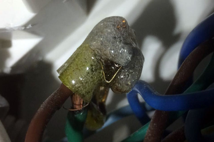 Skarvklämmor har många fördelar, men ökar också risken för elfel. Det visar en bild på en skarvklämma med smält plast runtom som vi har uppmärksammat tidigare.