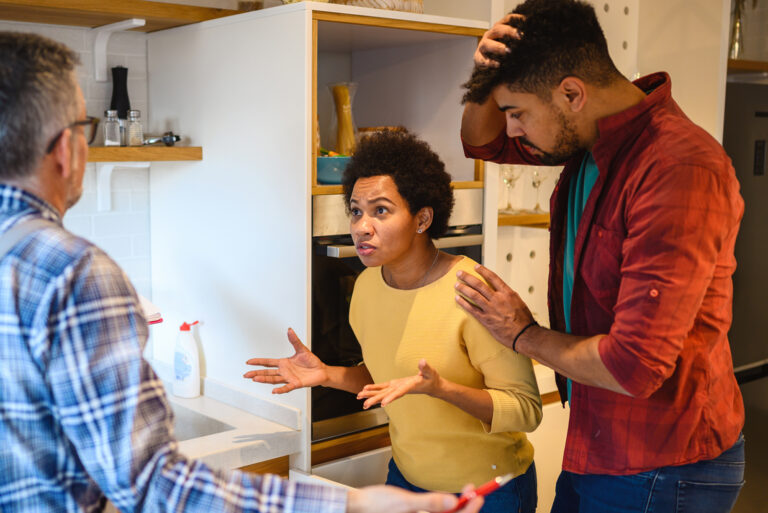 Ett strömlöst kök, fel badrumsskåp och en granitbänkskiva på fel höjd. Kunden pekar på byggfirman och menar att de är skyldiga till allt, men stämmer det – och vad hade avtalats?