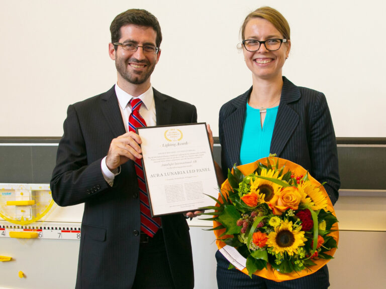 Svenska Aura Lights LED-panel Lunaria för takmontering är världens mest effektiva kontorsbelysning, det konstaterades av en internationell tävling ordnad av energimyndigheter världen över.