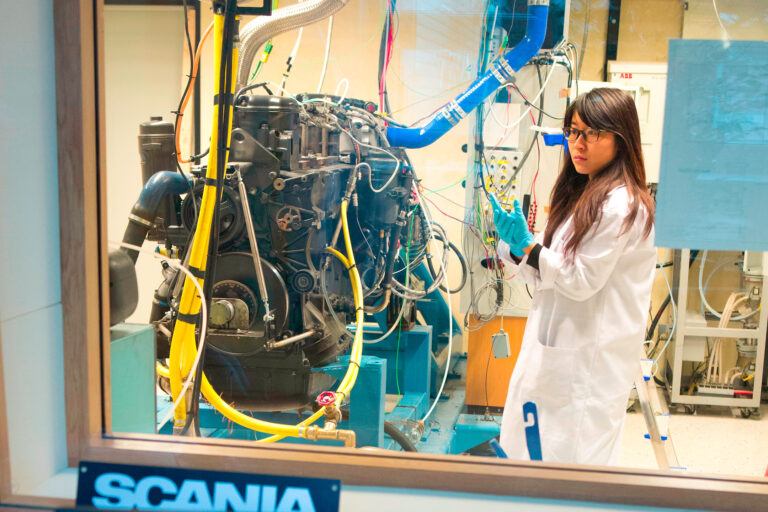 Välkommen till Lunds Tekniska Högskolas nya motorlabb – ett av de ledande i sitt slag i världen. Här tar elmotorer i kolossalformat greppet om jättelika dieslar. Utan eltekniken skulle inte den tekniska forskningen på förbränningsmotorer komma särskilt långt. – Det behövs inte bara eldrivna fordon i framtiden, utan också effektivare bensin- och dieselmotorer. Här hos oss jobbar de båda motorteknikerna – elmotorn och ottomotorn - tillsammans, berättar professor Bengt Johansson.