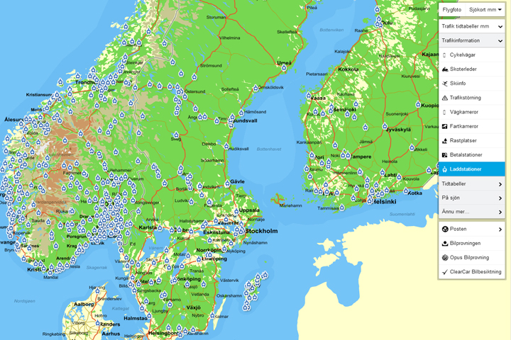 Laddstationer i Eniros karttjänst