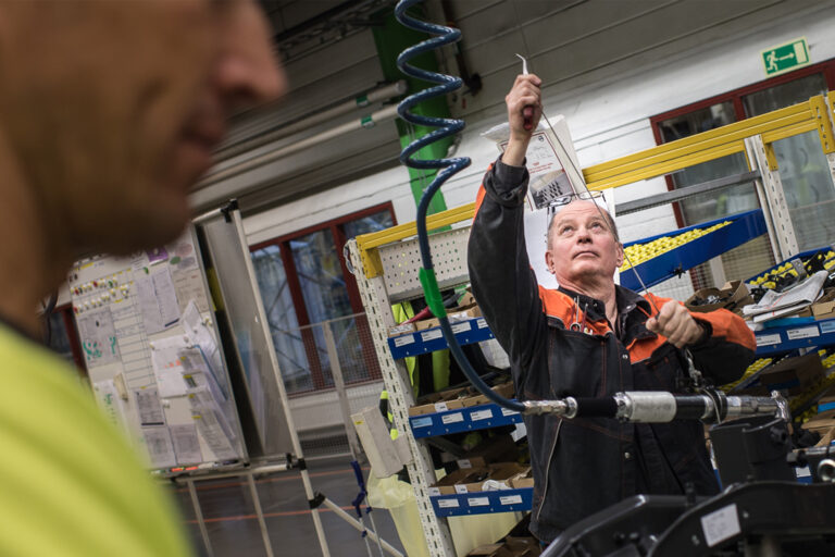 Volvo lastvagnars monteringsfabrik i Tuve på Hisingen i Göteborg är gigantisk. Här arbetar Mats Karlsson som en av flera ”melare” – kombinerad mekaniker och elektriker. Han gillar att arbeta med händerna och minns hur det kändes när han provade på att vara arbetsledare istället. Han fick lägga verktygen åt sidan och kände att det var inte riktigt hans grej: – Jag kommer aldrig mer att lämna ifrån mig min spänningsprovare, säger Mats Karlsson, som har jobbat på Volvo i snart 50 år.