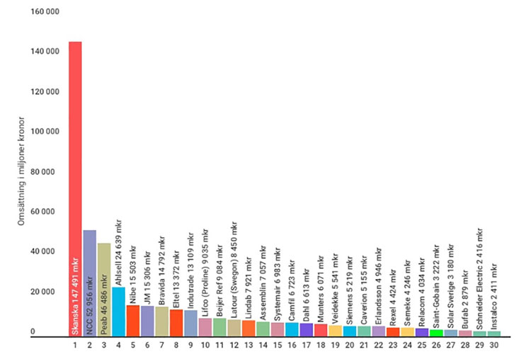 UPPDATERAD 30 bygg-och installationsbolag finns med bland landets största företag. Det visar Veckans Affärers ranking av landets 500 största företag i Sverige 2017.