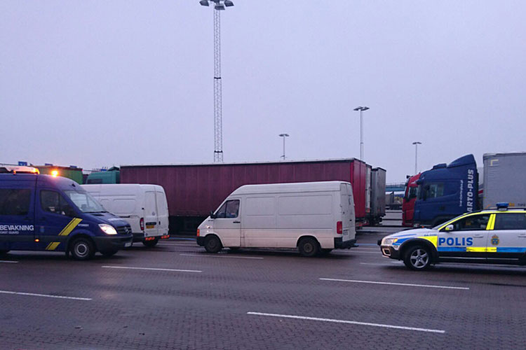 Sex män blev i går dömda av Kalmar tingsrätt för stöd och häleri till fängelsestraff på mellan 1–1,5 års fängelse och därefter utvisning efter att ha gripits på bar gärning på väg ut ur landet med två skåpbilar fulla med stulna verktyg och däck.