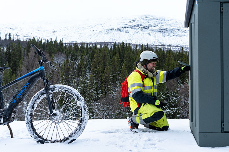 Elektrikern Tobias som använder elbil och elcykel för att byta ut radiokoncentratorer på fjället har blivit en PR-succé för Jämtkraft. Men internt möter han både hurrarop och skepsis, inte bara för elcykeln utan också för elbilen han kör. ”Diskussionen slutar alltid med Valsjöbyn.”