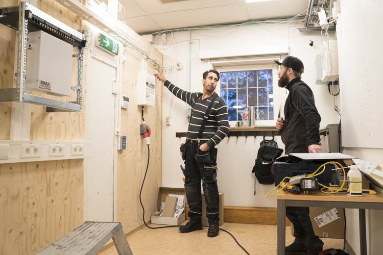 Utbildningen på tre terminer för vuxna som vill bli elektriker är tuff. Av 13 som började är det bara sex som går ut, men de är populära. “Vi har företag på kö som vill ha framförallt våra ETG-elever på APL”.