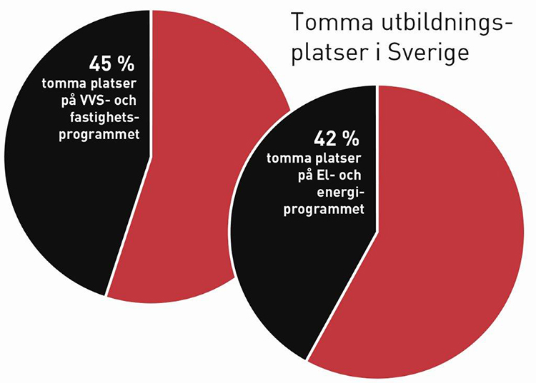 Drygt 40 procent av platserna på installationsprogrammen (VVS och el) i landets tre storstadsregioner står tomma, enligt preliminära siffror från Gymnasieantagningen. Men det finns gymnasier som har fullt och till och med kö till VVS- och elprogrammen.