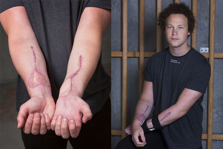 Gustav Östermyr överlevde ljusbågeolyckan men skadades allvarligt. Ett år senare kämpar han fortfarande för att komma tillbaka på 100 procent.